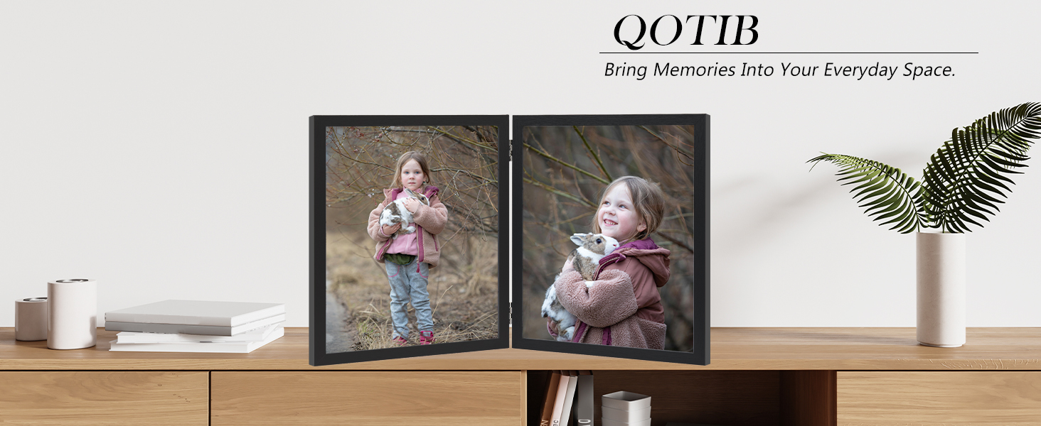 Picture Frame Size: QOTIB black 8x10 double picture frame fits 2 pcs 8x10 inch photos pictures artworks posters canvas. The wooden back of the picture frame protects your photos from dust, moisture and keeps them in perfect condition. Double frames 8x10 have 0.5 inch thickness, can be stably placed on the table and desk vertically.
