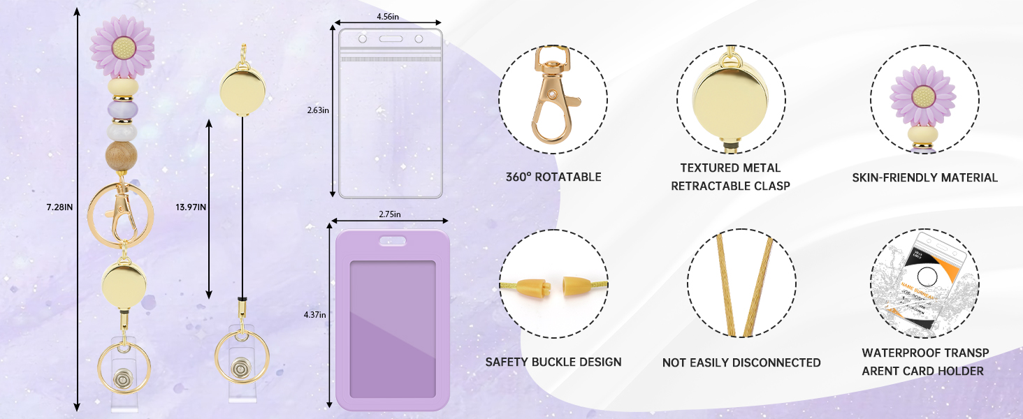 Package Included: Includes 1 silicone beaded retractable lanyard for ID badge and 2 ID badge holders, making it a versatile and stylish accessory for school, work, or everyday occasions
