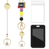 Material and Crafts: Lanyard with ID holder features silicone beads, retractable cord, teacher keychain, yellow and clear ID badge holders, and high-quality metal clips, with finely textured synthetic materials for durability and style