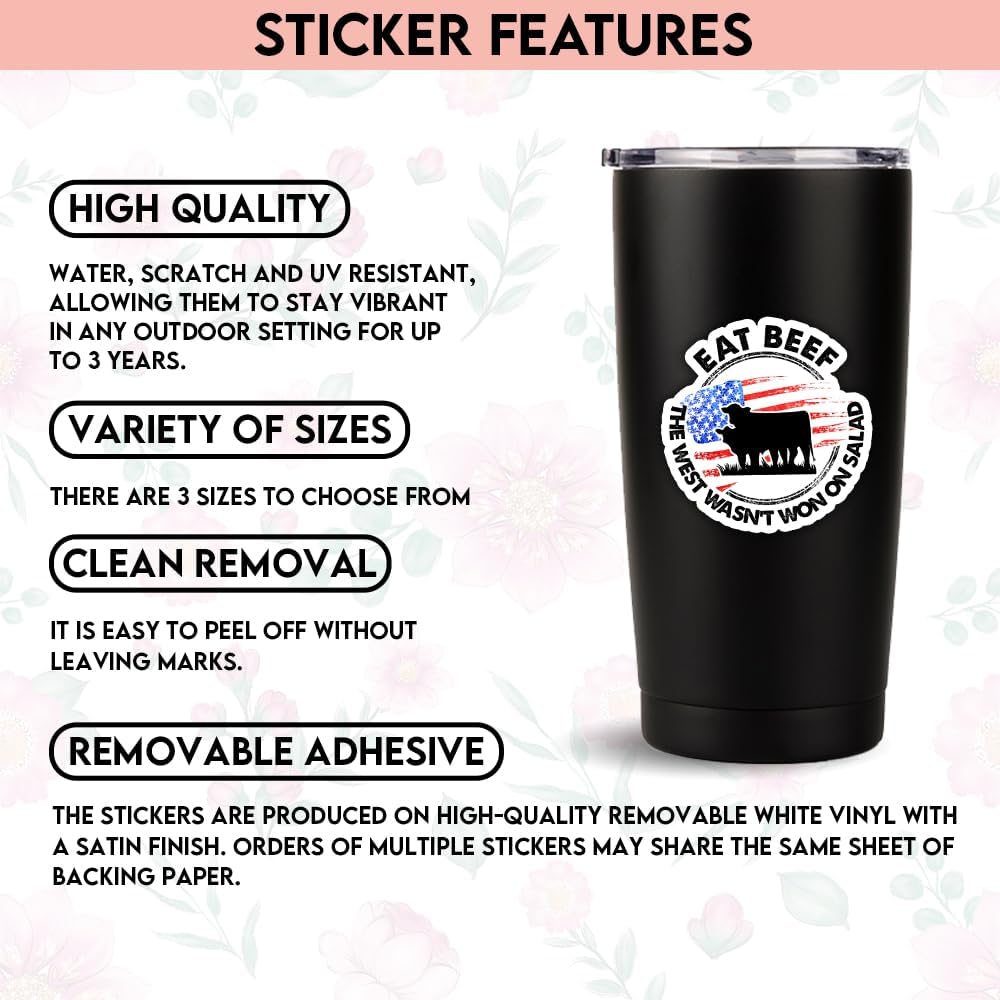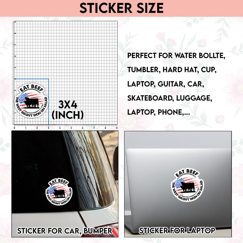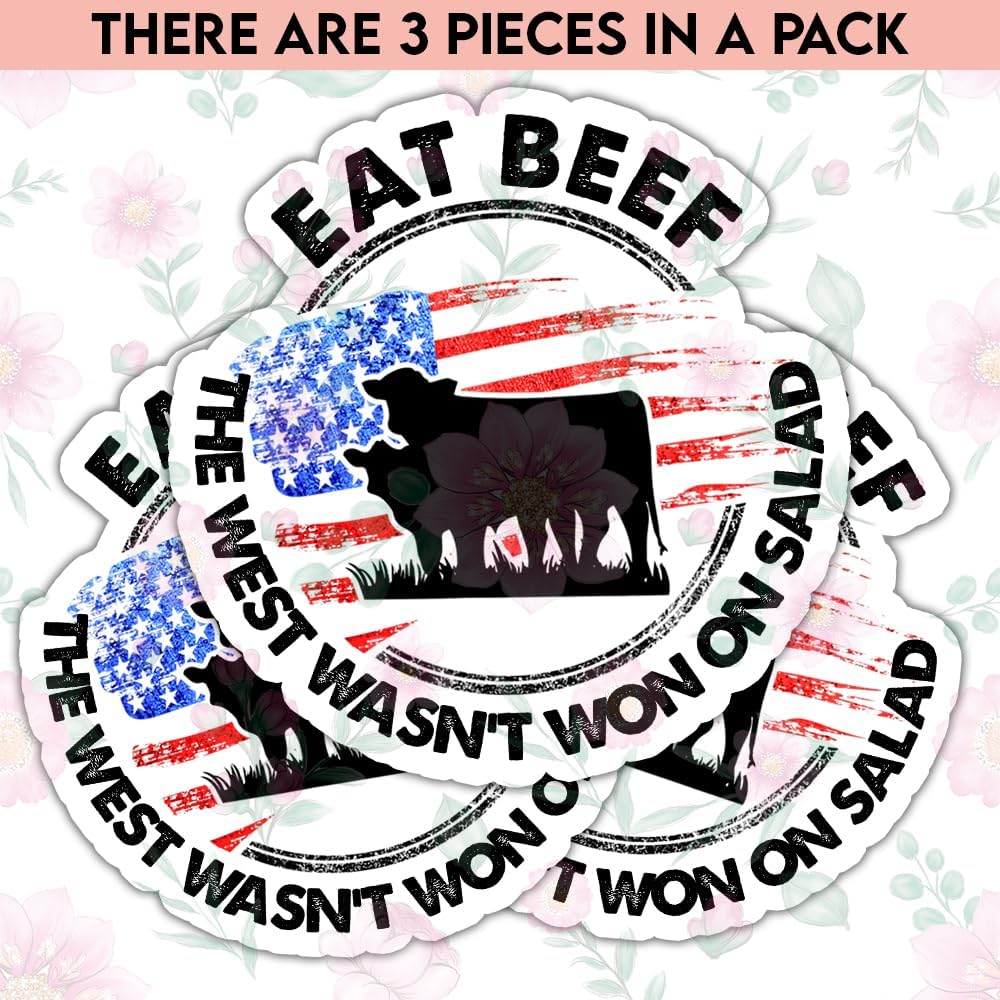 TODOLIA (3Pcs-3in) Eat Beef The West Wasn't Won On Salad Sticker Funny Eat Beef Carnivore Sticker Meat Lover Gift Decoration Planner Tablet Laptop Helmet Vehicles Decal