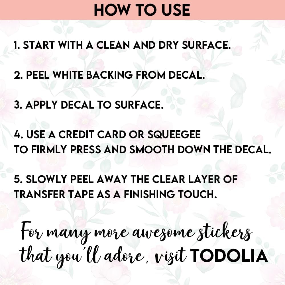 Welcome to TODOLIA, your one-stop shop where you can find the best stickers for your personal and professional needs. You can go through our large collection of stickers and choose the ones that best fit your style and personality to adorn your phone, kindle, laptop, scrapbook, or car. Our stickers are designed and printed on a 3-inch template. Their professional kiss-cutting lets you simply peel and stick them to most smooth surfaces. Our stickers ensure a great, long-lasting look throughout the years. Our first goal and greatest focus is having satisfied customers. Our committed and expertly trained staff is here to help you with any problems you may be having with our product. Thank you for being TODOLIA's valued customer. We are so grateful and hope we met your expectations.!