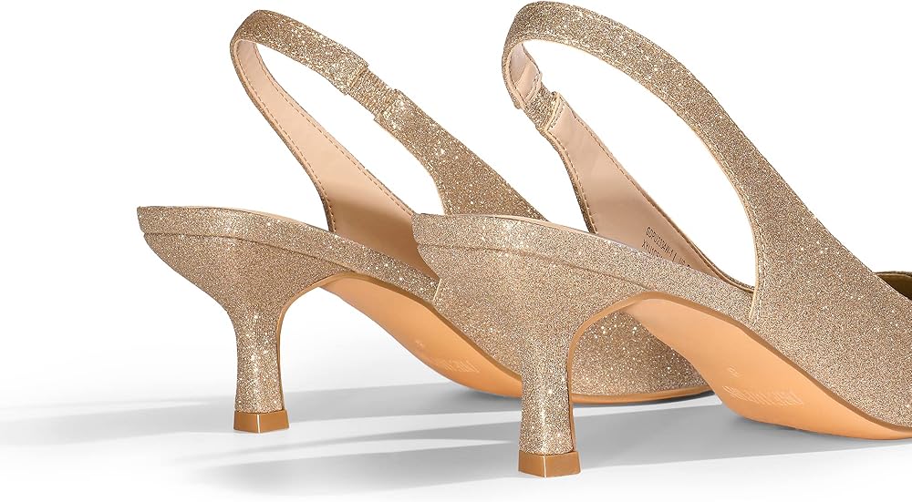 Different Materials: These slingback heels are available in a range of colors and materials. The PU style is easy to clean and maintain. The suede style showcases an elegant vibe. Wear the gold and silver glitter pumps for stand out style.