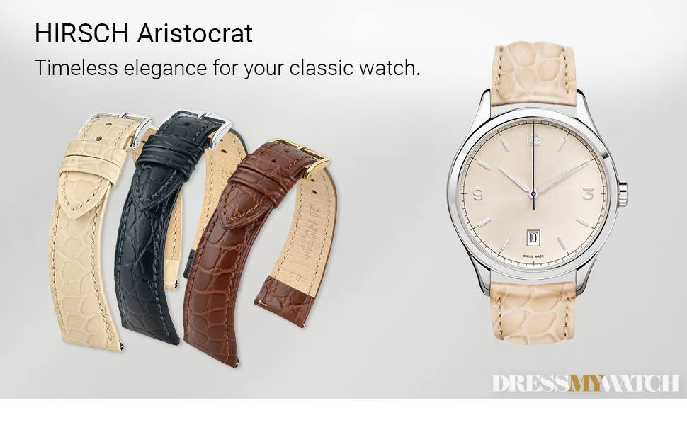 - Hirsch Crocograin Bonded Crocodile Leather Watch Strap (Brown) with Stainless Steel Gold colored buckle | Band Length (mm) - Medium (110/70) | Attachment / Buckle Width (mm) - 18 / 16