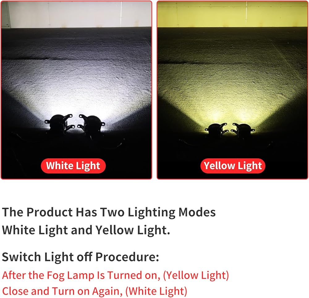 【Light】: There Are Two Kinds of Light, Yellow【Light】: There Are Two Kinds of Light, Yellow Light and White Light for the Product. the Usage Method: Turn on the Fog Light for the First Time, (Yellow Light), Turn off and Turn on Again, and Then Display It, (White Light) Light and White Light for the Product. the Usage Method: Turn on the Fog Light for the First Time, (Yellow Light), Turn off and Turn on Again, and Then Display It, (White Light)