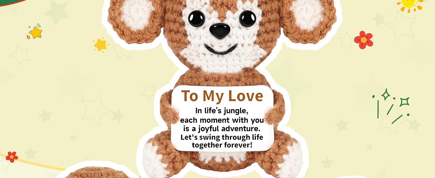 Give the gift of confidence and motivation with PinCute's Handmade Positive Crochet Animals. Share the love and positive vibes with your mom, dad, sister, brother, friends, teachers, or colleagues, and watch as this special monkey brings joy and inspiration to everyone who receives it