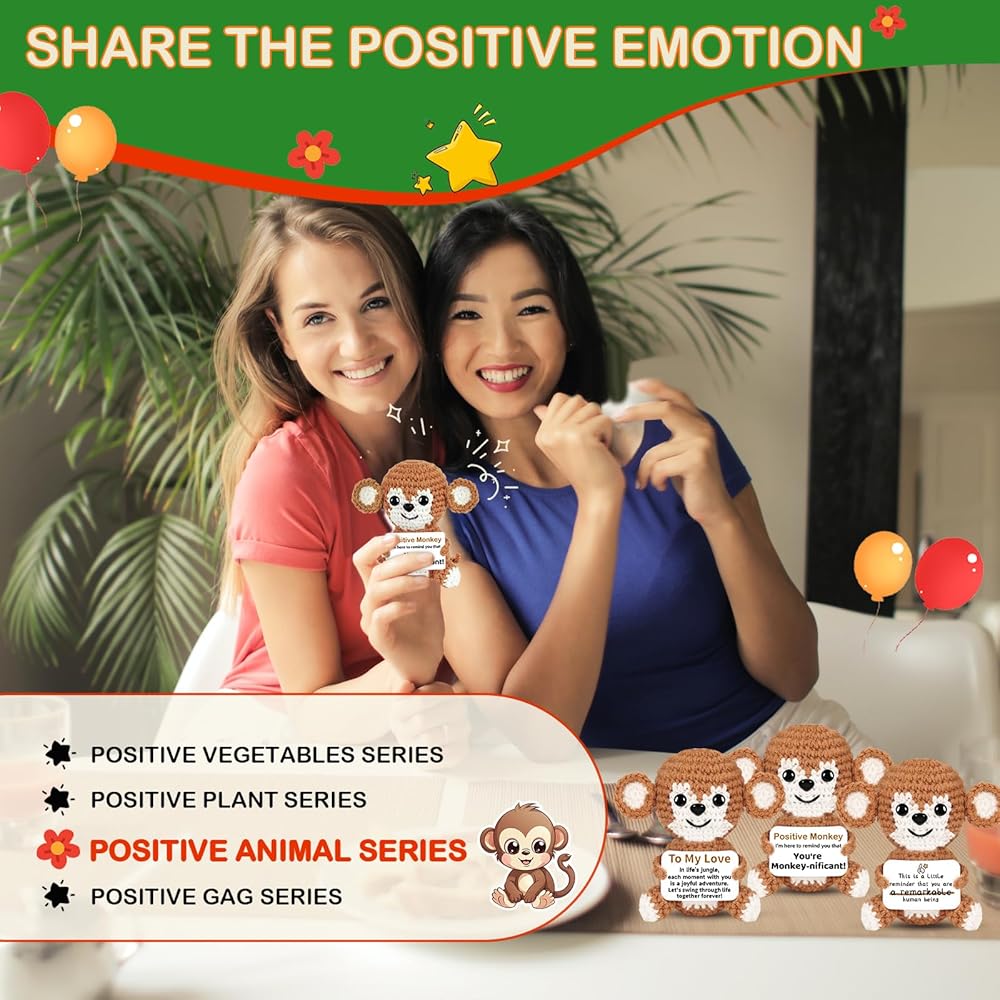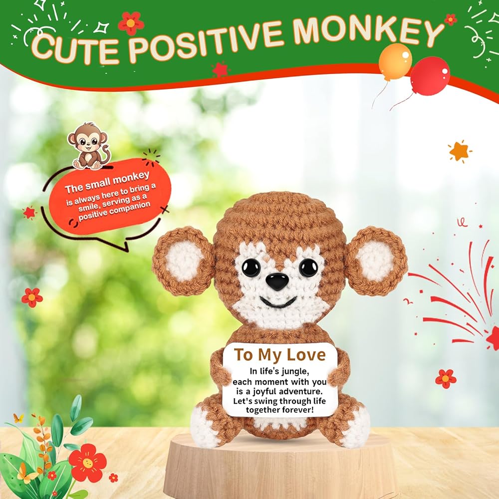 PinCute Postive Stuffed Monkey Crochet Animals Gifts for Women and Men - Emotional Birthday Anniversary Easter Father Mother’s Day Thank You Unique Present Funny Gift for Him/Her/Boyfriend/Girlfriend