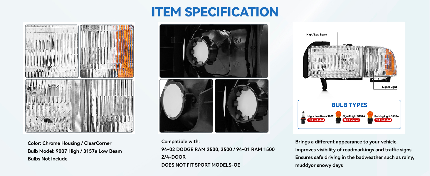 Revolutionary Lighting Experience: QLLUYTR's professional design team uses advanced optical equipment to engineer a precise light pattern that delivers super-bright illumination while meeting SAE (Society of Automotive Engineers) standards. Designed to provide enhanced visibility, safety, and a refined driving experience.Compatible with: 2001 dodge ram 2500 headlights / 2001 dodge ram 2500 led headlights / 1998 dodge ram 1500 headlights / 1999 dodge ram 1500 headlight assembly / 96 dodge ram 2500 headlights / 94 dodge ram headlights