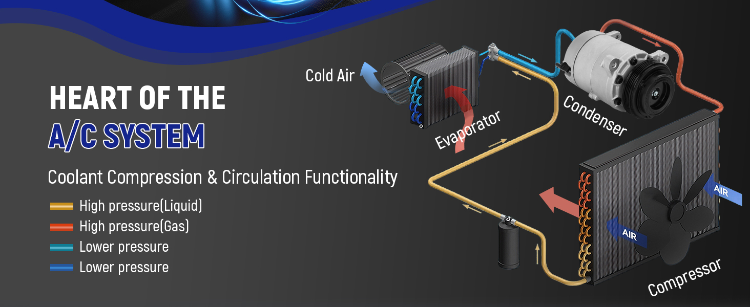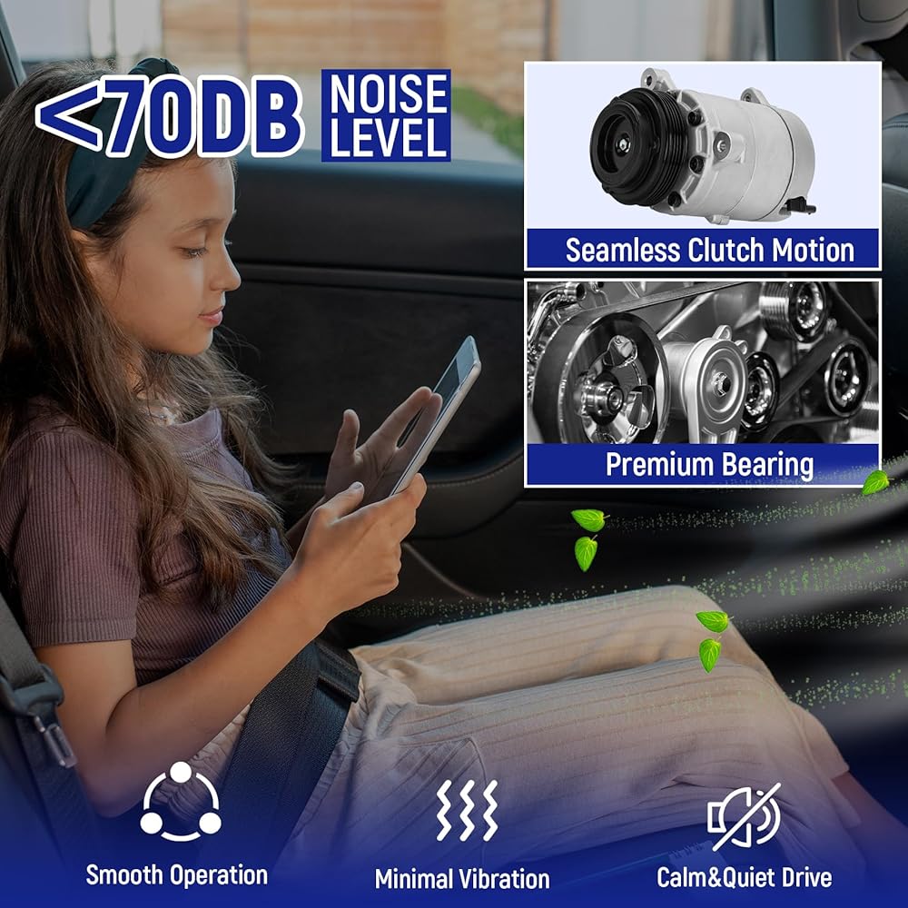 🔹【OEM-Grade Quality】3 Strict Tests Ensure Durability Manufactured, this HVAC A/C Compressor meets or exceeds OEM specifications for performance and reliability. Each unit undergoes 3 rigorous quality checks: ① pressure leak test (guarantees zero leakage), ② high-temperature resistance test (withstands up to 120℃ extreme temperatures), ③ clutch durability test (10,000+ operation cycles with no failure)