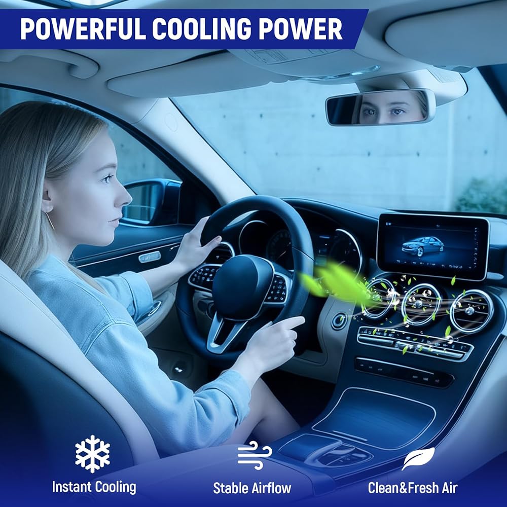 🔹【Efficient Cooling & Quiet Operation】3800kcal/h Cooling Capacity, 50dB Low Noise Delivers 3800kcal/h cooling capacity—cools your vehicle by 10°F within 5 minutes, 20% faster than industry averages. Equipped with advanced balancing technology, the compressor operates at just 70dB (quieter than most competitors'75-80dB), eliminating annoying vibrations during driving. Pure copper coil construction delivers exceptional durability for long-lasting performance