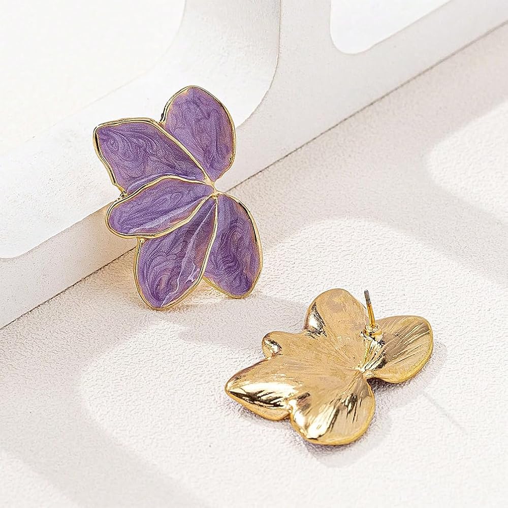 Dainty Purple Floral Stud: The dainty purple enamel really makes this floral earrings pop, giving it a stylish finish. This unique earring is a great choice for gifting, blending into your favorite costume accessories for a look that's all your own