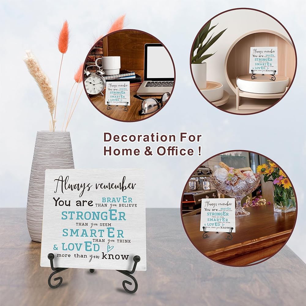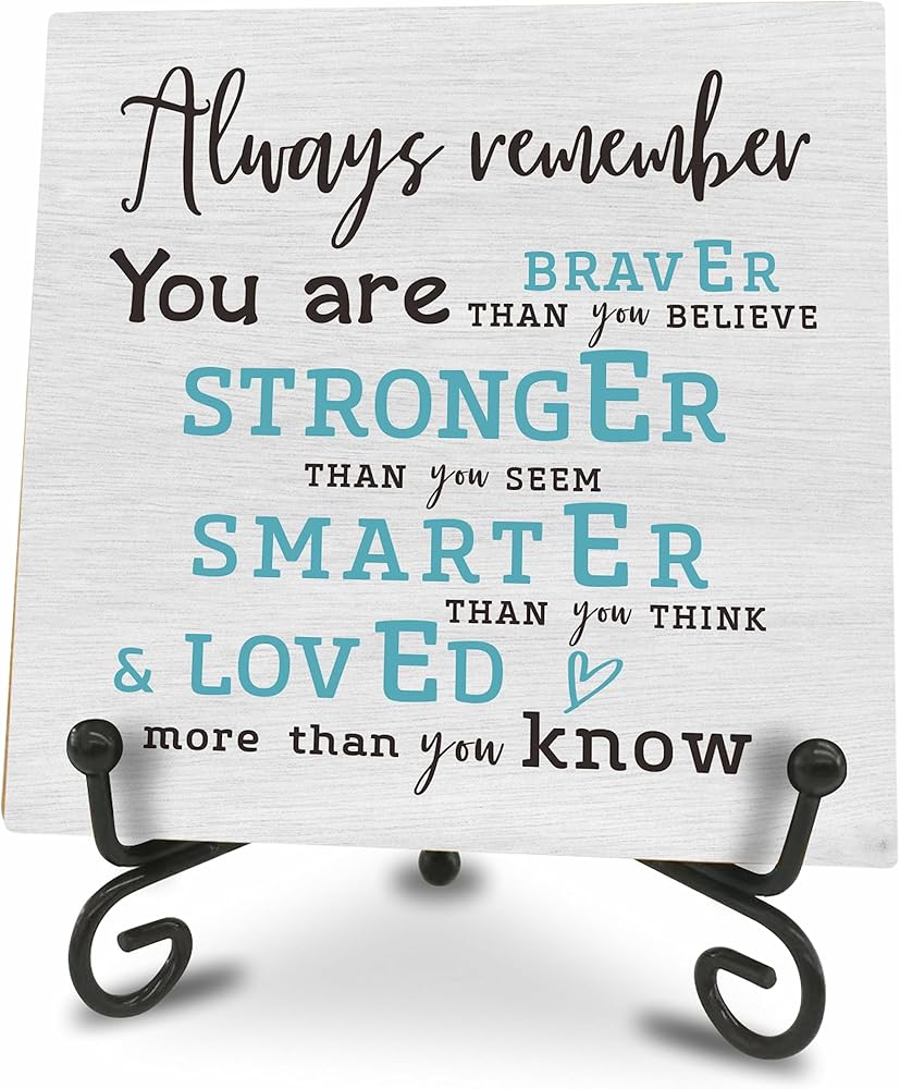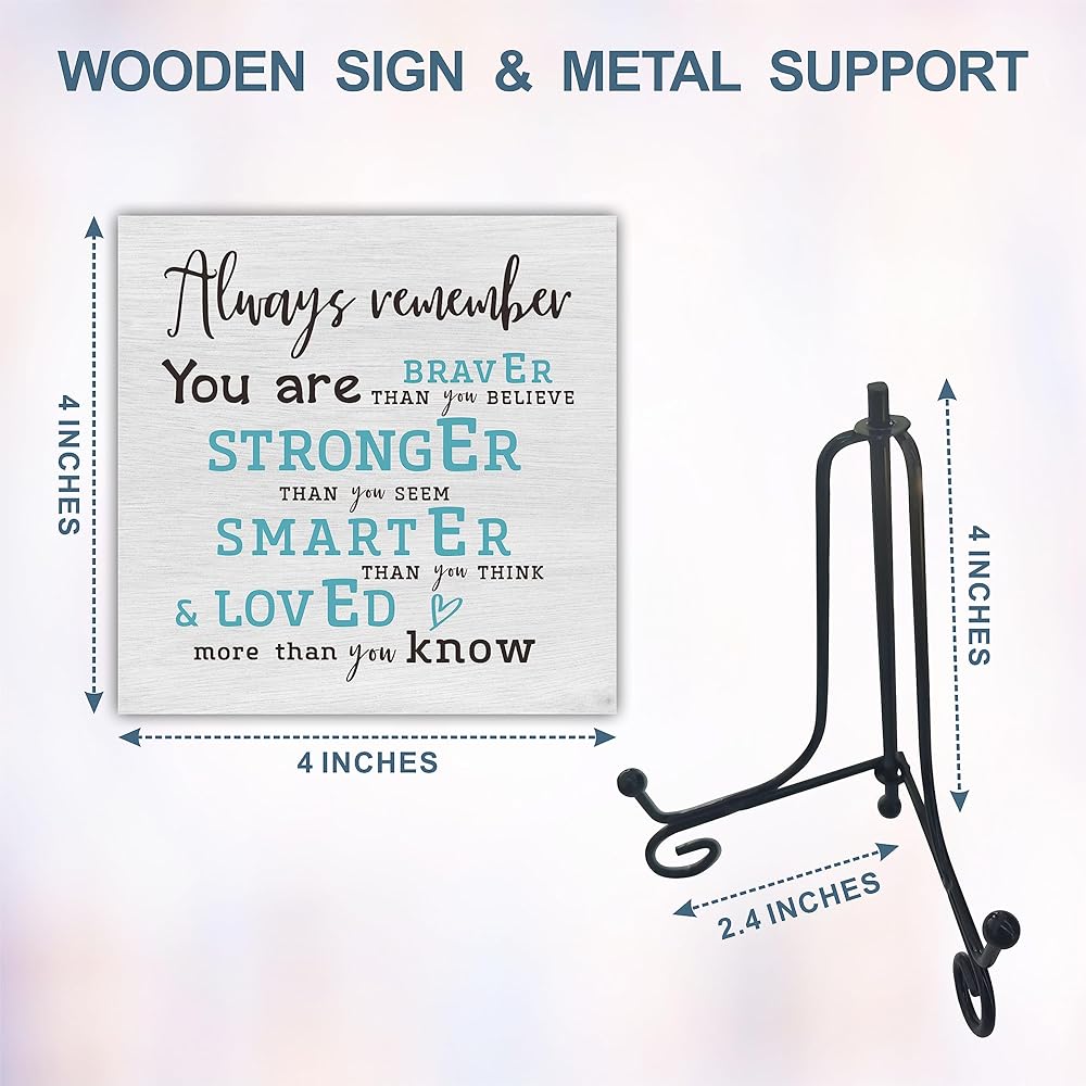 Wooden Sign Gifts - Braver, Stronger, Smarter, Positive Reminder - Motivational Wood Plaque With A Support Frame - Home & Office Inspirational Gifts For Women And Man, Desk Decor & Accessories(Blue) - A03