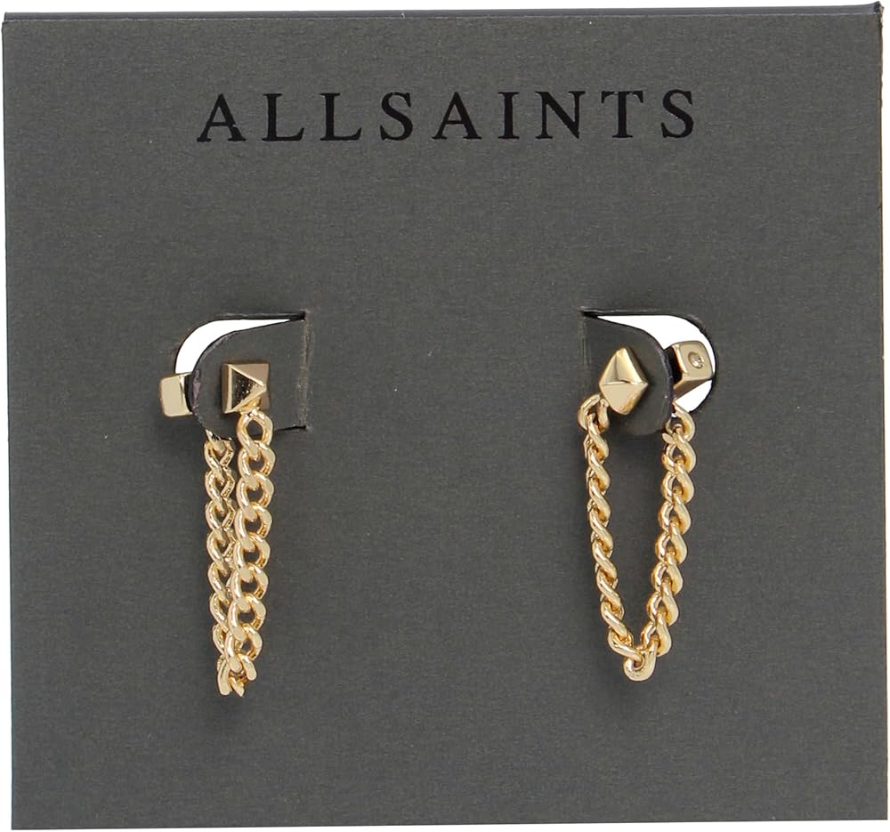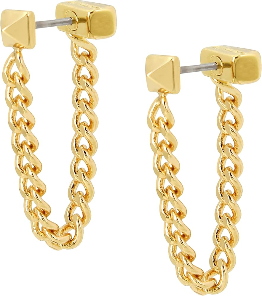 Everyday earrings featuring minimal pyramid stud paired with refined front to back swag chain. Earrings have a post back closure. Made from brass.