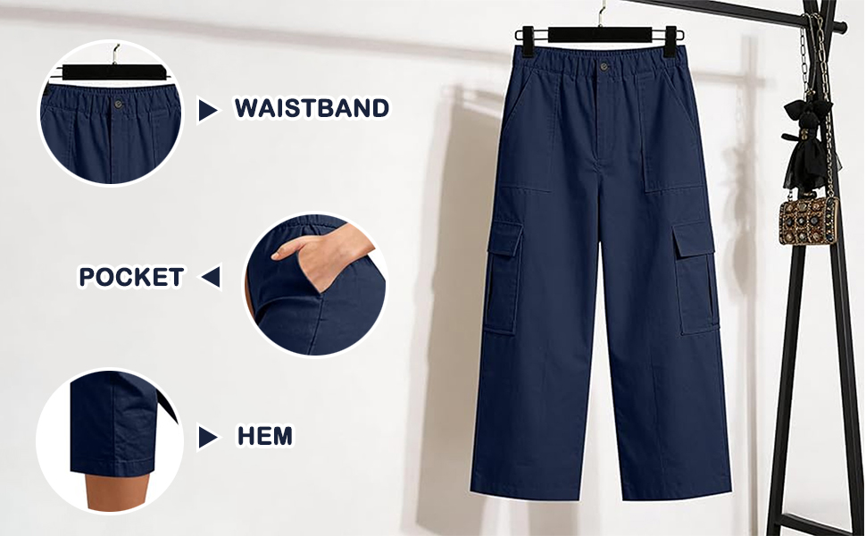 Design: Button elastic waist straight leg with pockets design, so that the waist of this womens cargo pants can better fit the human curve.These are essential women's slacks for your wardrobe