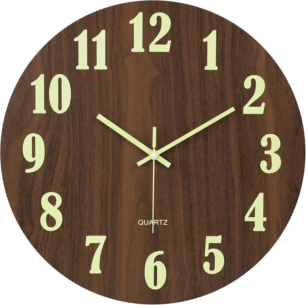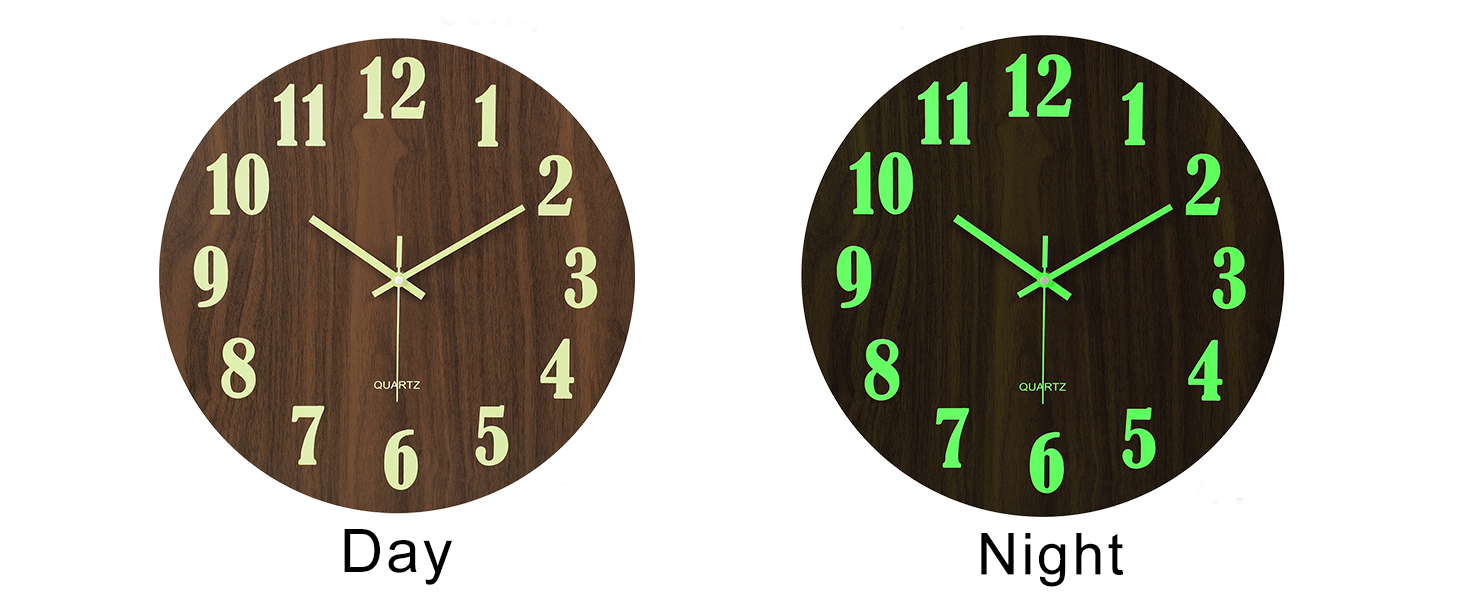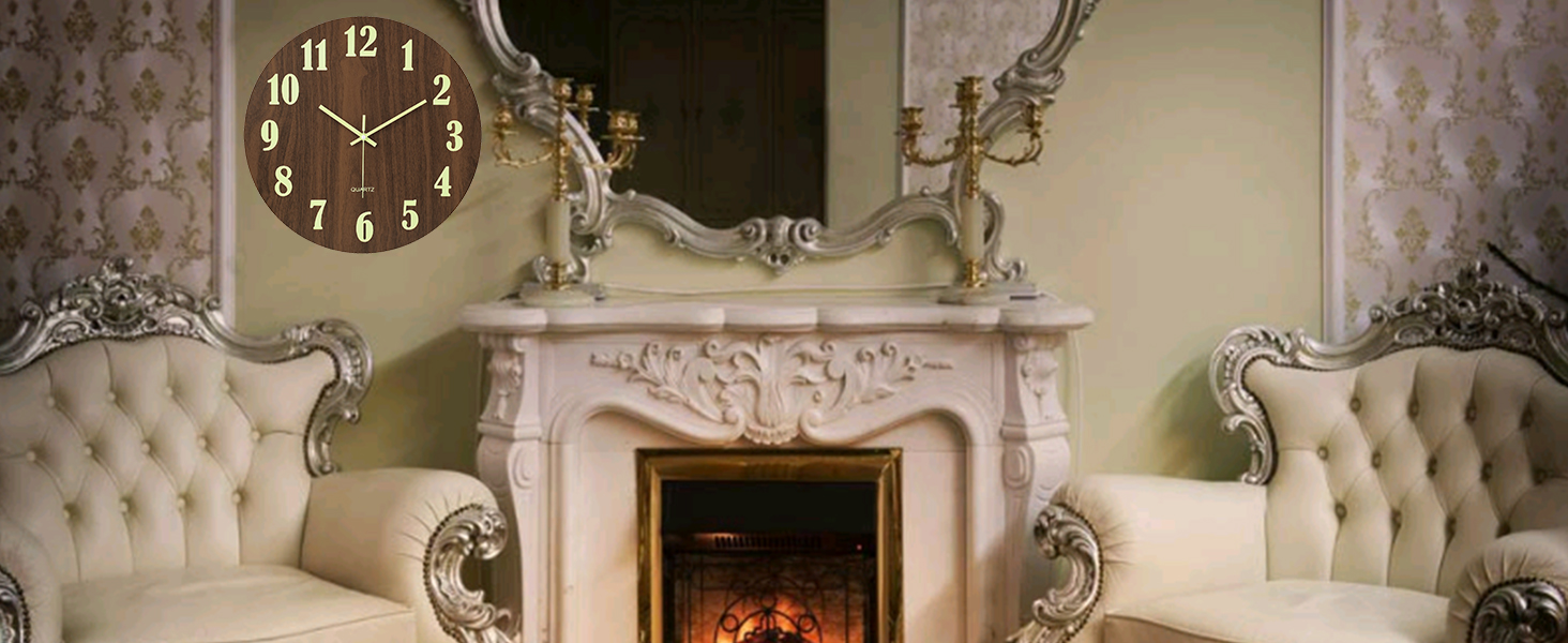【Illuminated-Easy to read】The large wooden decorative round wall clock has night light function for easily to see and read at night.Wooden MDF(Brown) dial with white numbers for easily to read during the daytime.