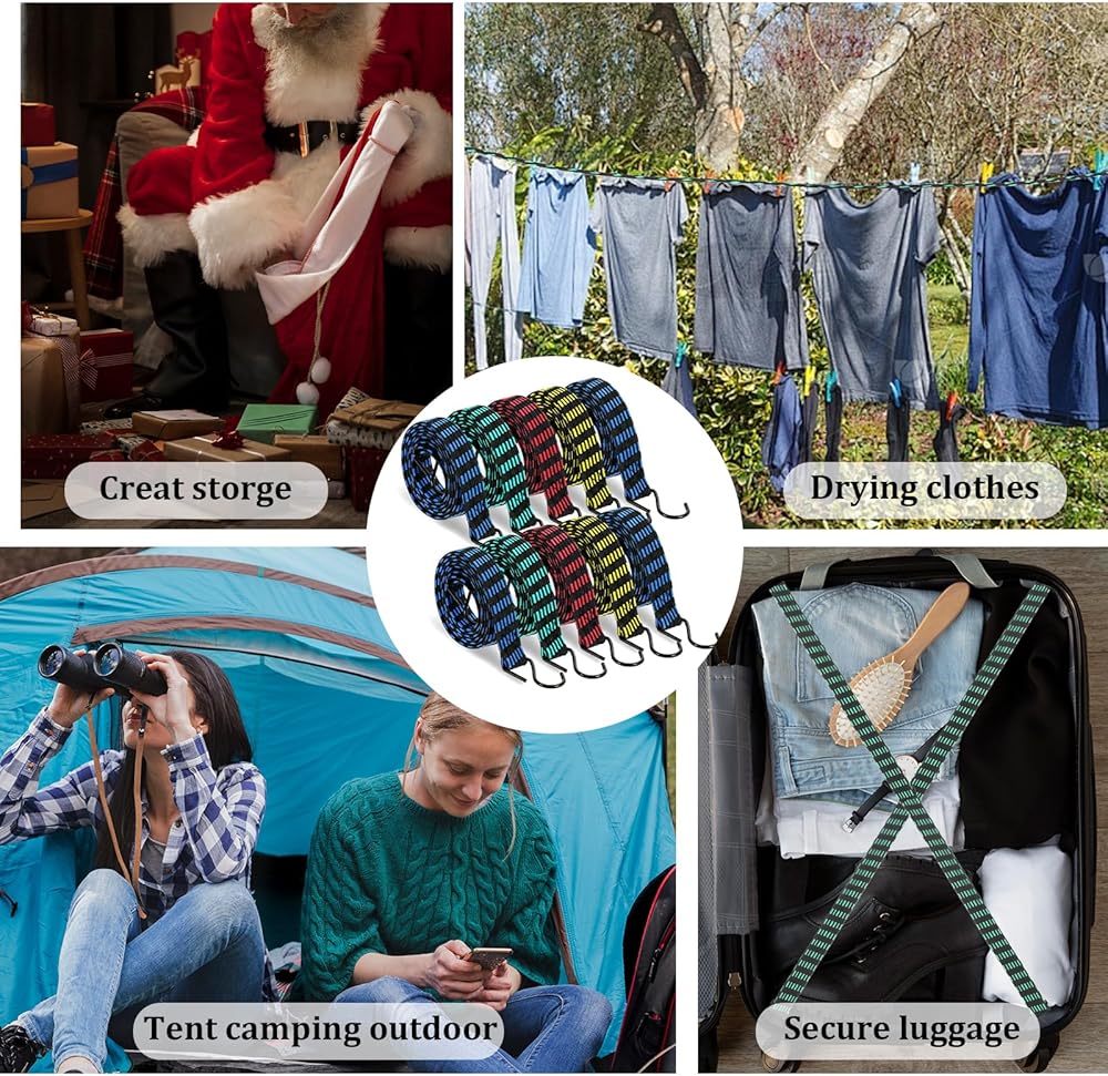 The elastic cord has an initial length of 2m (actual length may vary slightly). Maximum stretch length is up to 180 inches. Reinforced 3D stitching enhances durability, ensuring these large elastic cords can withstand frequent use and provide reliable performance.