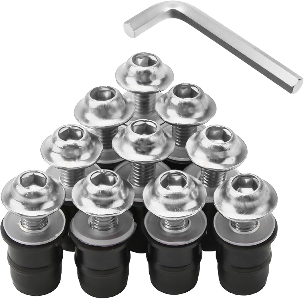 Easy to Use: Each set includes 10 windshield bolts, 10 nuts, 10 washers, and one hex wrench for fast installation and secure fitting on your motorcycle. You can easily remove old bolts using the provided wrench, then align and tighten the new ones in place