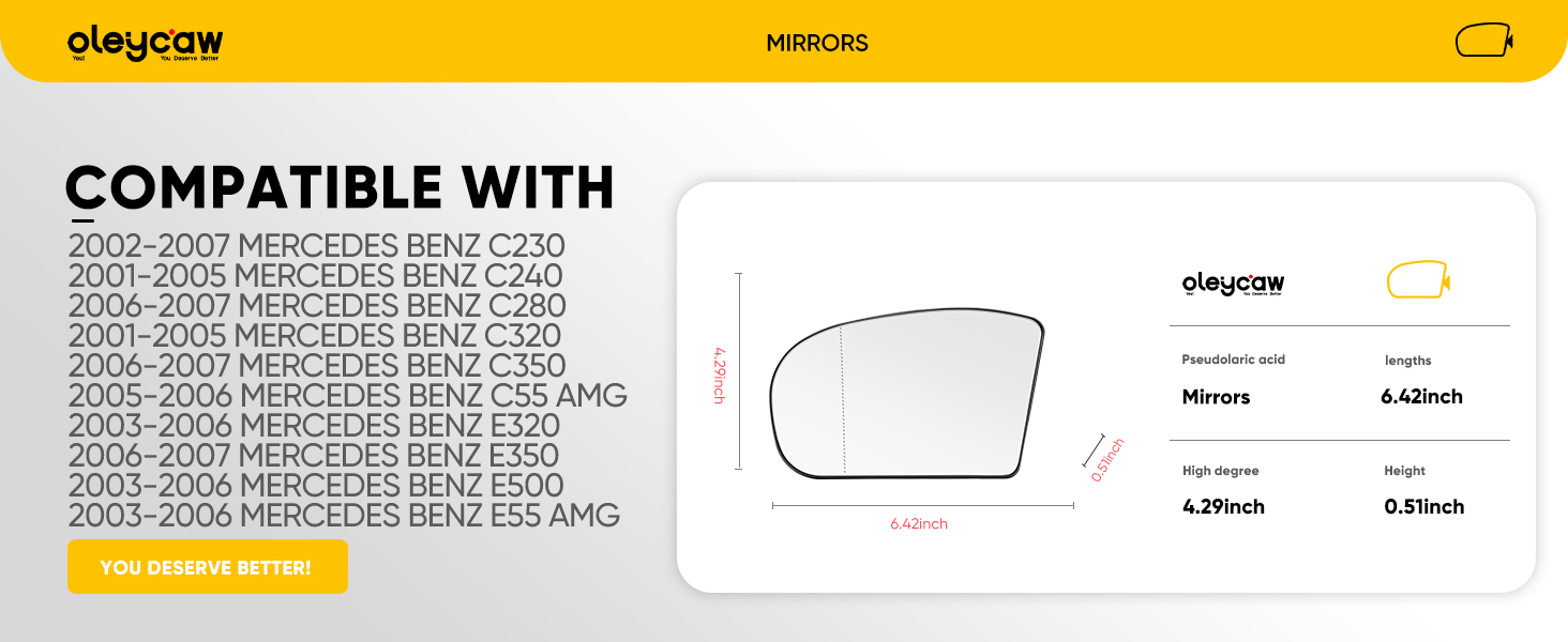 Stable fit: Mirrors for mercedes benz w203 w211 adopt high toughness ABS material with precise fit. The driver side mirror is firmly attached to the side mirror glass assembly at high speeds