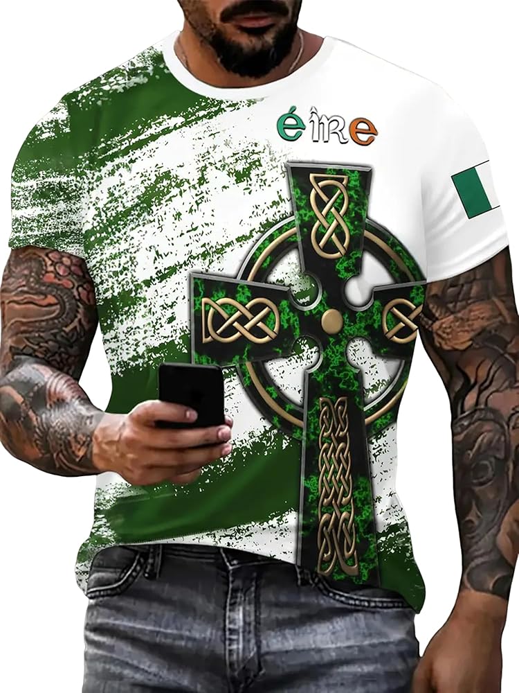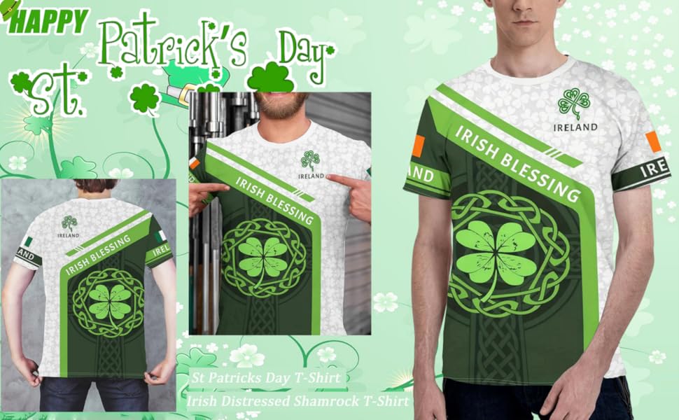 High Quality Mens St Patricks Day Shirt:Our Irish Distressed Shamrock T-Shirt is made from premium 95% polyester and 5% spandex,soft & coolness fabric.Good construction, skin friendly,quick dry