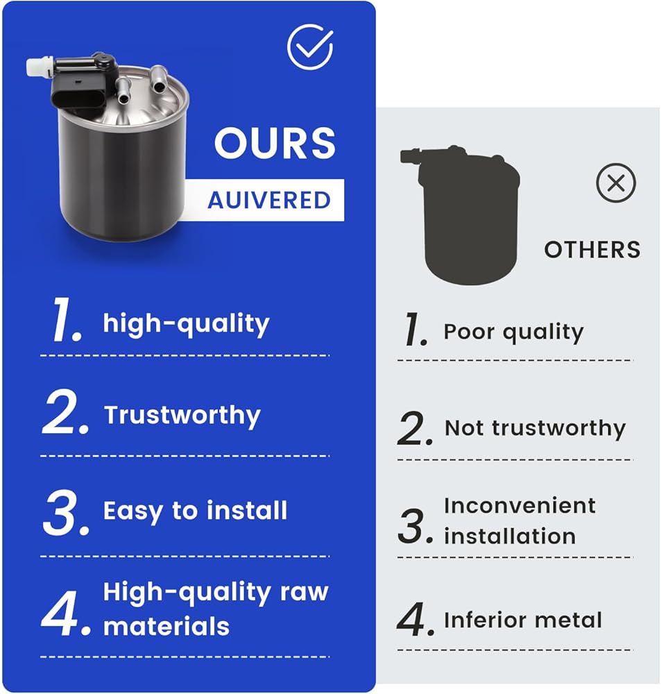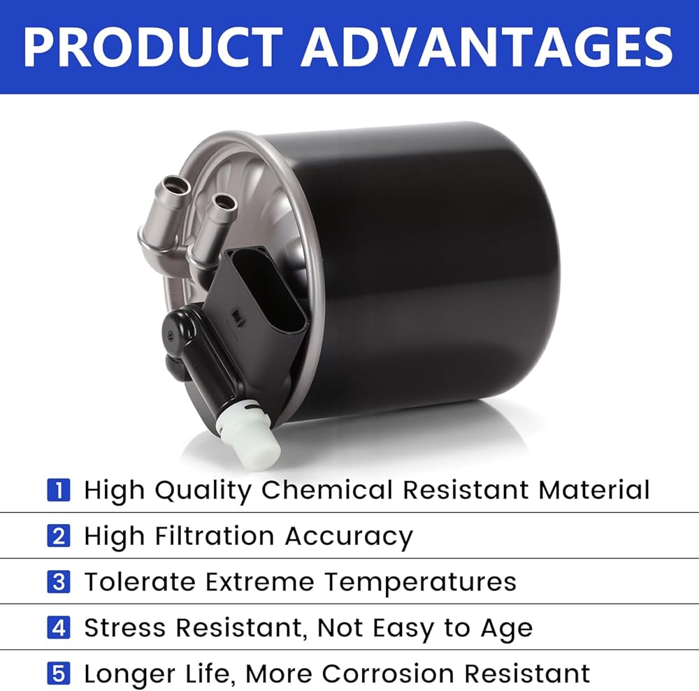 【HIGH-EFFICIENCY FILTRATION】- The filter uses advanced and high-efficiency filtration media, and the filtration efficiency of impurities such as dust, rust, and dirt exceeds 99%, effectively preventing them from entering the fuel injection system and protecting key components such as injectors and oil pumps.