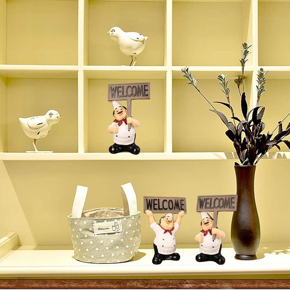 Chef Figures: Chef figures statue is made of synthetic resinous, beautiful and strong. French chef welcome board decorative figurine is cute and unique design, not easily deformed, can be used with confidence. Each chef figurines, 13*7*20.5cm/5.1*2.8*8.1inch, which make it a great decor in home or coffee shop