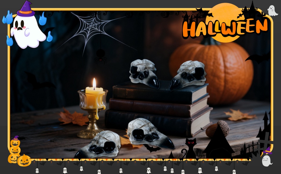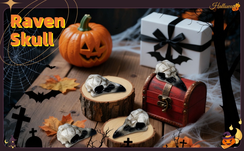 Halloween Decor: These mini raven head statue are ideal for Halloween party decorations. You can place these Halloween raven skulls around your home, table and bar to make a Halloween scene