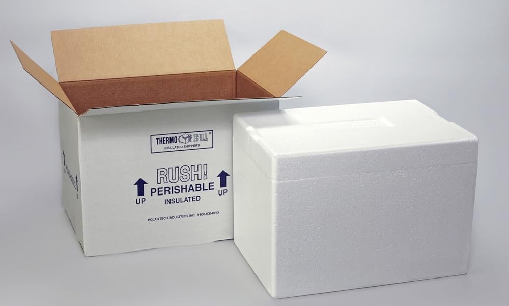 Polar Tech Thermo Chill insulated carton with foam shipper. Our insulated foam containers are manufactured with the highest degree of quality and integrity. They are excellent shipping containers for everything from biotechnology, genetic engineering, organ procurement, diagnostic testing to pharmaceutical distribution. Additional products include: fine chemicals, reagents, insulin, lab cultures, blood, tropical sea life and lab testing applications. Any product that is temperature sensitive can be safely shipped in our Thermo Chill insulated containers. Thermo Chill containers are very economical because they are lightweight, reusable and recyclable. They are made in two pieces: a tight fitting lid and a seamless molded body. 1-1/2" Wall thickness.