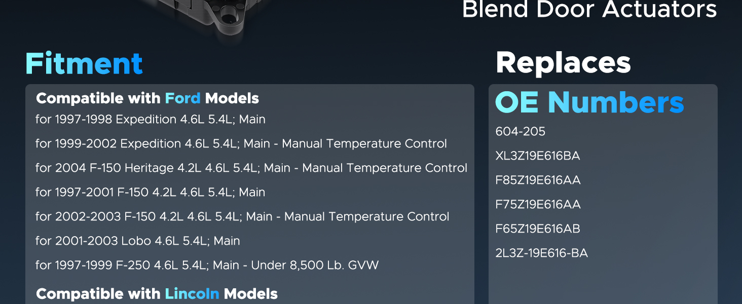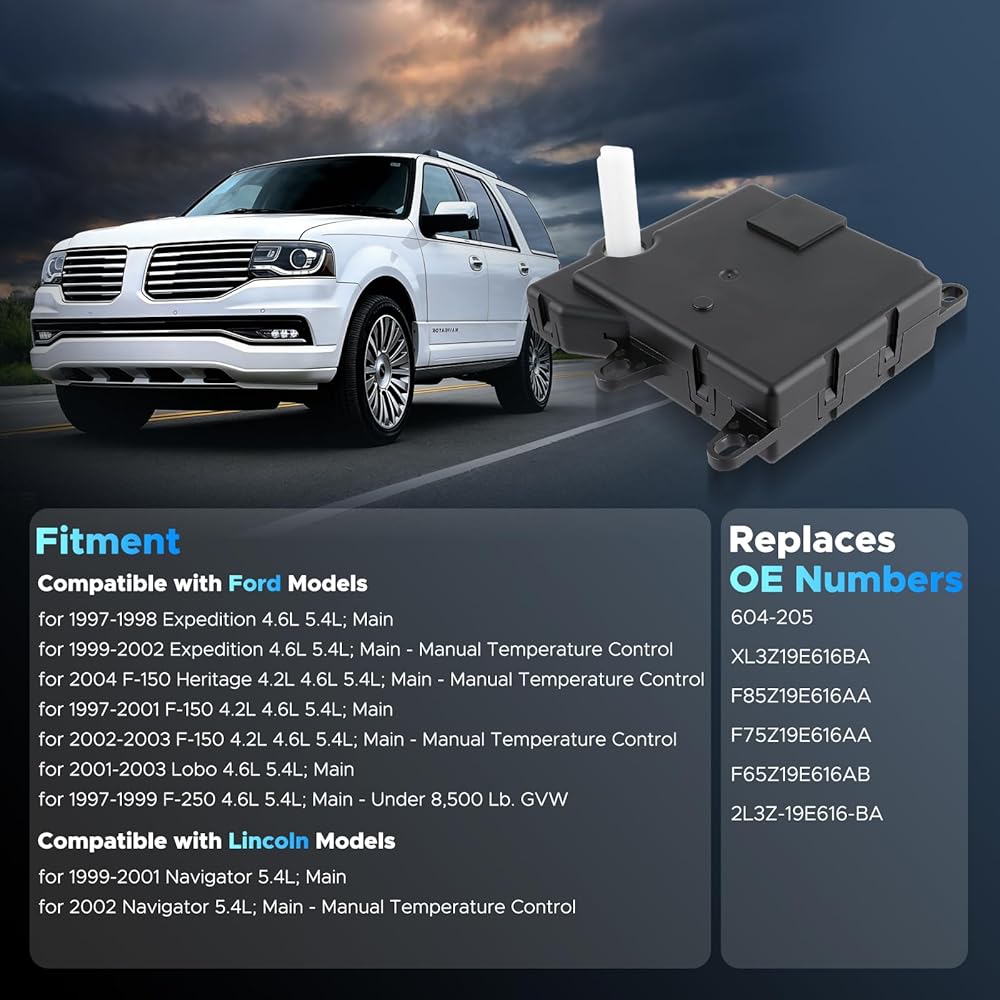 HVAC Heater Blend Door Actuator Compatible with Ford F-150 1997-2003, F-250 97-1999, Expedition 97-2002, Lobo 2001-03, for Lincoln Navigator 1999-2002 Main Replaces 604-205 XL3Z19E616BA