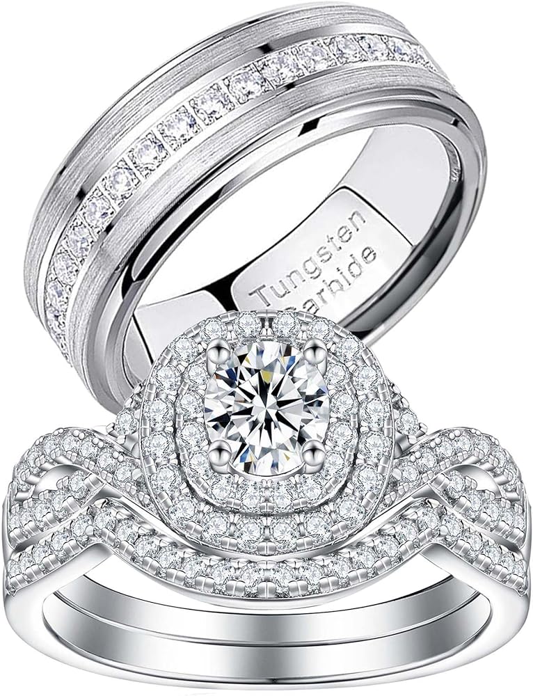 Material: Women's ring - 5A grade cubic zirconia 925 Sterling Silver with gold plating; Men's ring - tungsten steel with aaaaa zirconia.