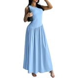 Feature: A casual drop waist maxi dress with a unique, flattering silhouette; a comfortable long tank sundress perfect for staying cool and stylish; a versatile sleeveless garment for daily activities; a simple plain long dress; an a line flared dress that offers graceful, flowing movement.