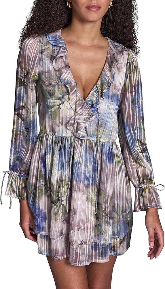 This BCBG Women's Dress is a Long Sleeve V Neck Chiffon Aline Mini Dress
