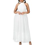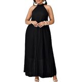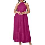 【Feature】:Sleeveless, Halter neck with trim, tiered pleated hem, keyhole back with button, and side pockets for functional charm.Casual sleeveless chiffon maxi dress are cut to flow down and bring a swing look with your walking.