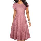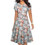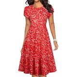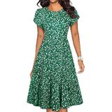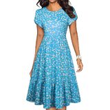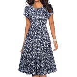 Size Guide: S=US 4-6, M=US 8-10, L=US 12-14, XL=US 16-18 Regular fit, slightly tapered at the waist / Summer Dresses For Women / Midi Dress For Women / Spring Dresses For Women / Casual Dress For Women / Crew Neck / Short Petal Sleeves / Printed / Tiered Flare A- Line / Swing And Flowy