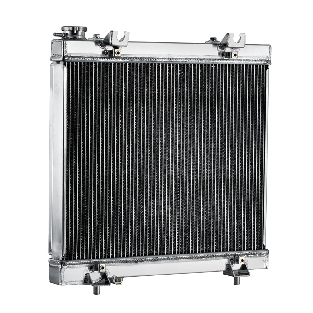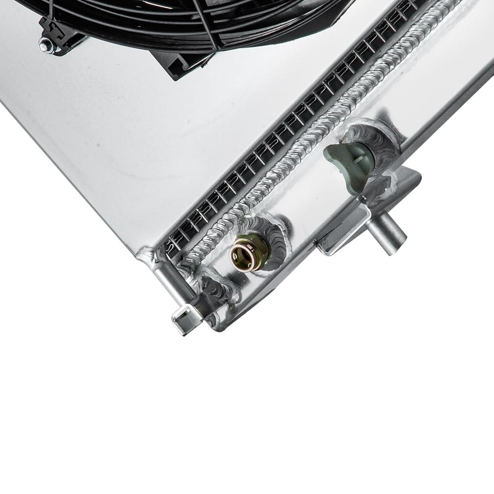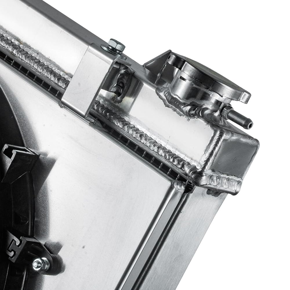 This aluminum radiator is designed to provide maximum cooling efficiency to prevent premature engine failure. Its light-weight, and high-heat transferring aluminum features a tube and fin design that, dramatically increases surface area that enables the heat to dissipate more efficiently. This Aluminum Radiator is at least 40% more efficient than stock ones. Most importantly, it has a much higher capacity for coolant than stock ones, which means that your cooling system will be more efficient and will be more resistant to temperature surges in racing applications.