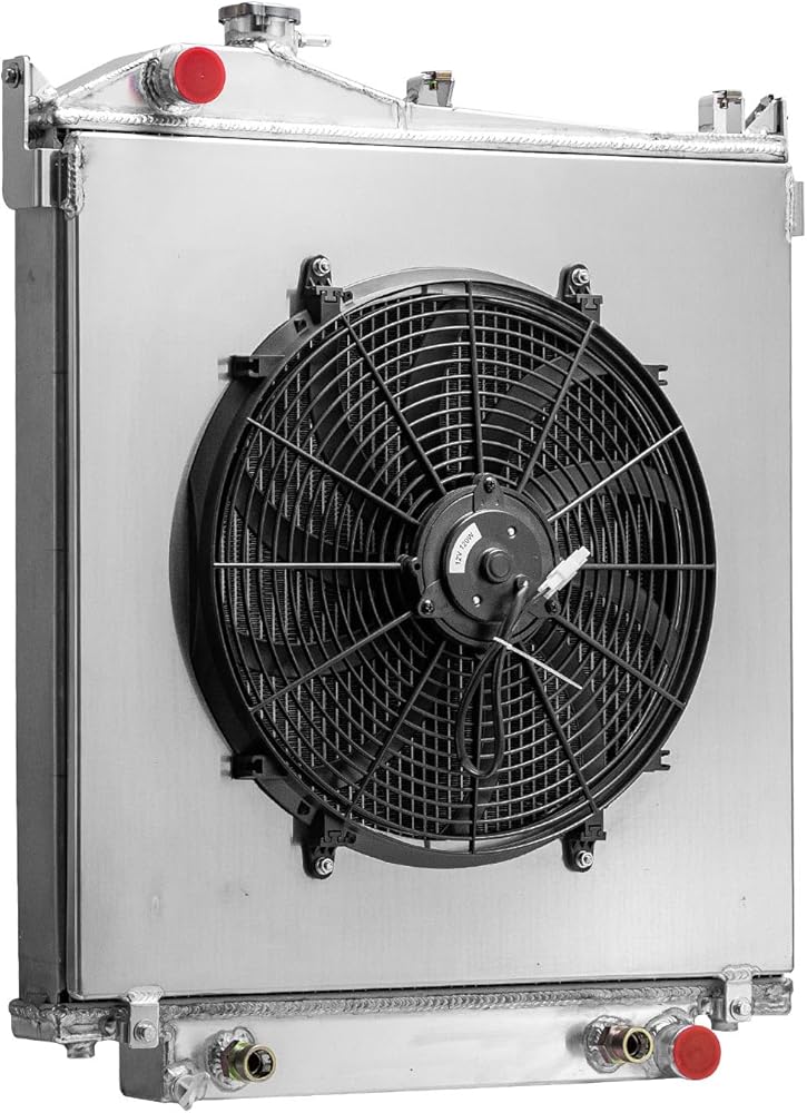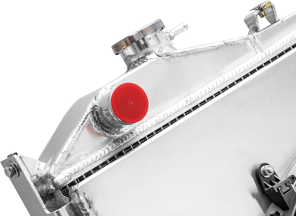 This aluminum radiator is designed to provide maximum cooling efficiency to prevent premature engine failure. Its light-weight, and high-heat transferring aluminum features a tube and fin design that, dramatically increases surface area that enables the heat to dissipate more efficiently. This Aluminum Radiator is at least 40% more efficient than stock ones. Most importantly, it has a much higher capacity for coolant than stock ones, which means that your cooling system will be more efficient and will be more resistant to temperature surges in racing applications.