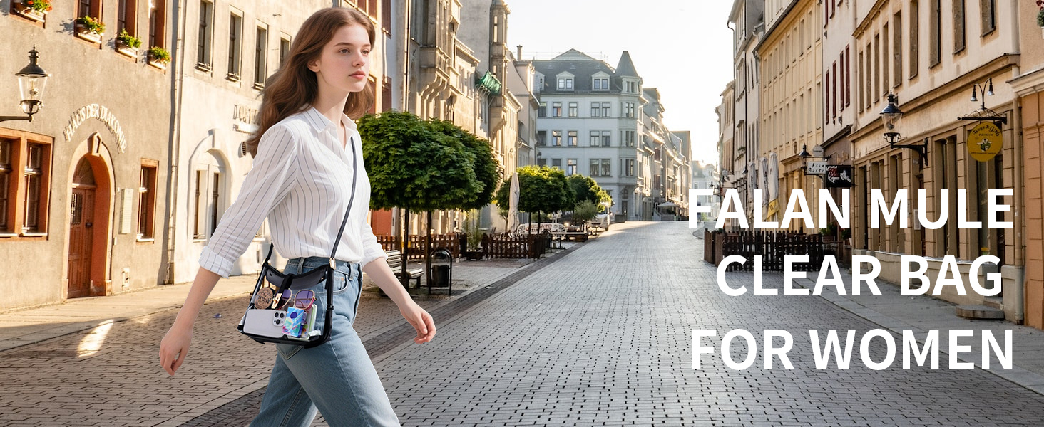 FALAN MULE Clear Bag for Stadium Events ,Small Crossbody Bag for Women Shoulder Purse for Concerts Sports