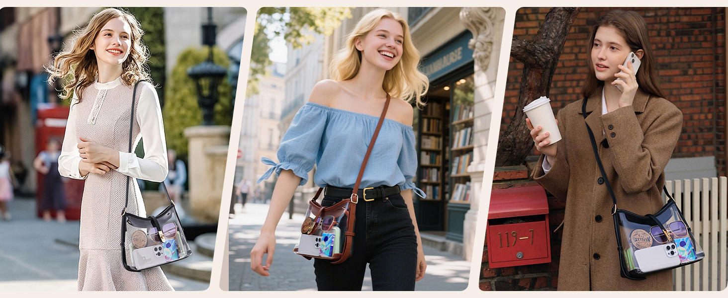 Multiple Occasions: Beyond stadium events, the clear purses for women are suitable for working, concerts, festivals, airports, museums, theaters, parties, shopping, travel and any other outdoor activities. Its classic and functional design makes it a versatile accessory that you can rely on for multiple uses
