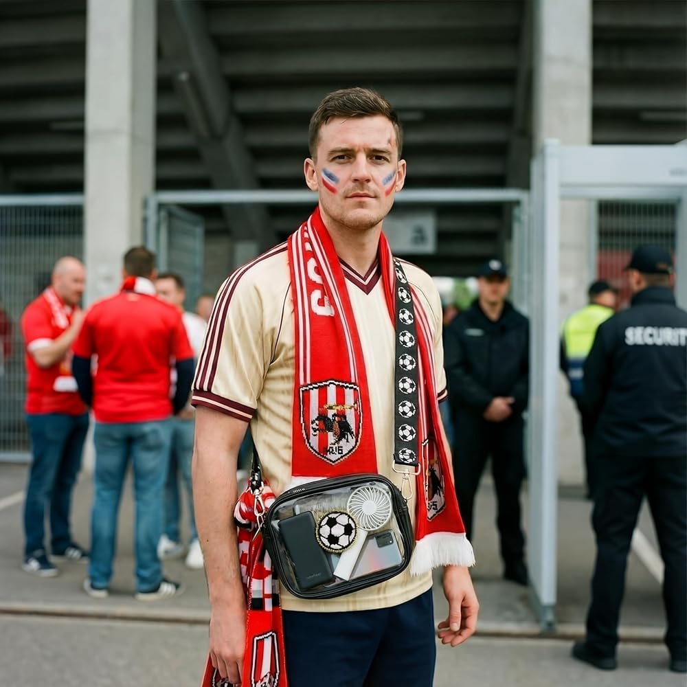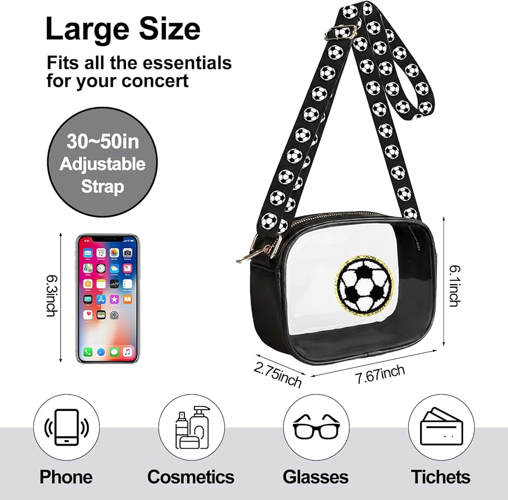Its crossbody style provides comfort and ease of wear. This soccer clear pouch is not just for games. It's a practical soccer crossbody bag for various occasions like travel, concerts, keeping your essentials accessible and protected.