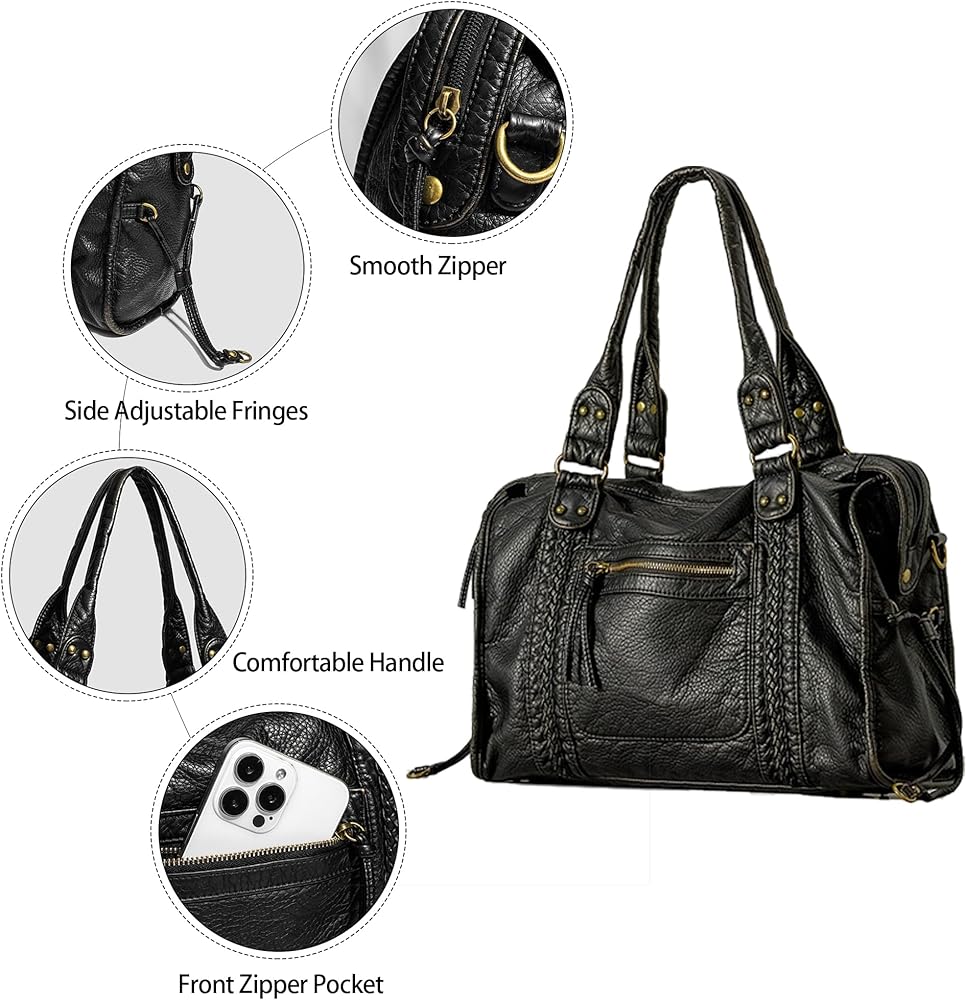 Occasion: Designed for the modern woman, this vintage grunge studded bag is perfect for daily commutes,shopping,dating,travel and more. The top handle desigen and detachable adjustable shoulder strap offer versatile carrying options for any occasion.It can also be effortlessly carried as a tote bag,top-handle handbag,hobo bag,shoulder bag.Also can be use for daily commutes,shopping,dating,travel and more.