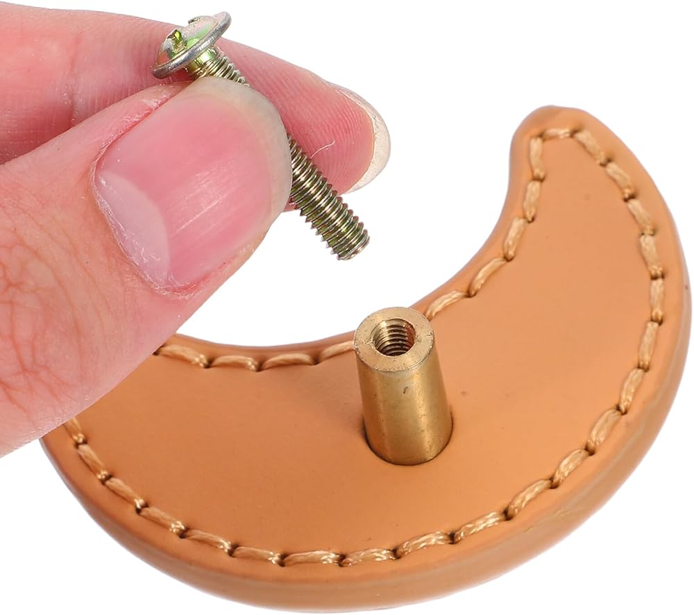 • Comfortable handling: the thickened pu handle offers a comfortable grip, making it easy to open and close drawers and wardrobe doors,drawer hardware,moon shape knobs