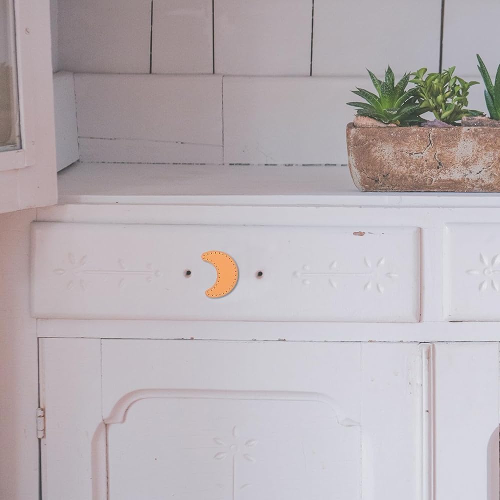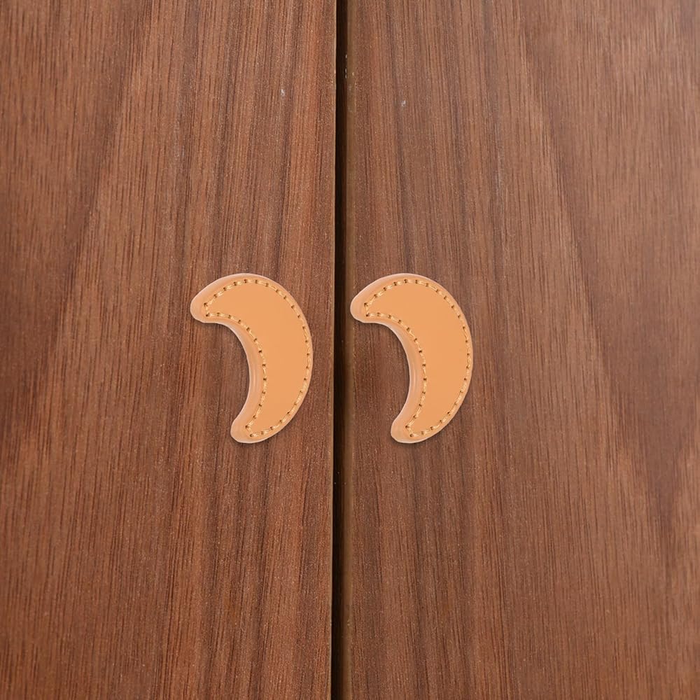 2pcs Moon Shape Wardrobe Cabinet Handles Pu Leather Drawer Pulls Vintage Furniture Hardware for Room Dresser Door Decor