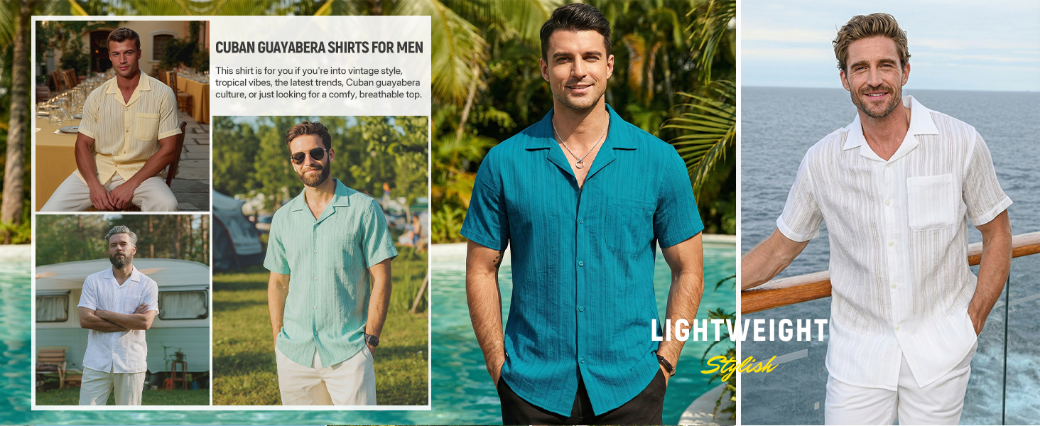 Premium Fabric: Mens short sleeve cuban shirt is made of 100% cotton fabric that is lightweight, breathable, soft and skin-friendly, keeps you cool and comfortable on hot days