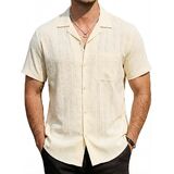 Cuban Guayabera Design: Mens guayabera shirts feature short sleeve, cuban collar, button closure, hollow cutout vertical pleats and regular fit. Stylish cuban design makes the shirt vintage and classic