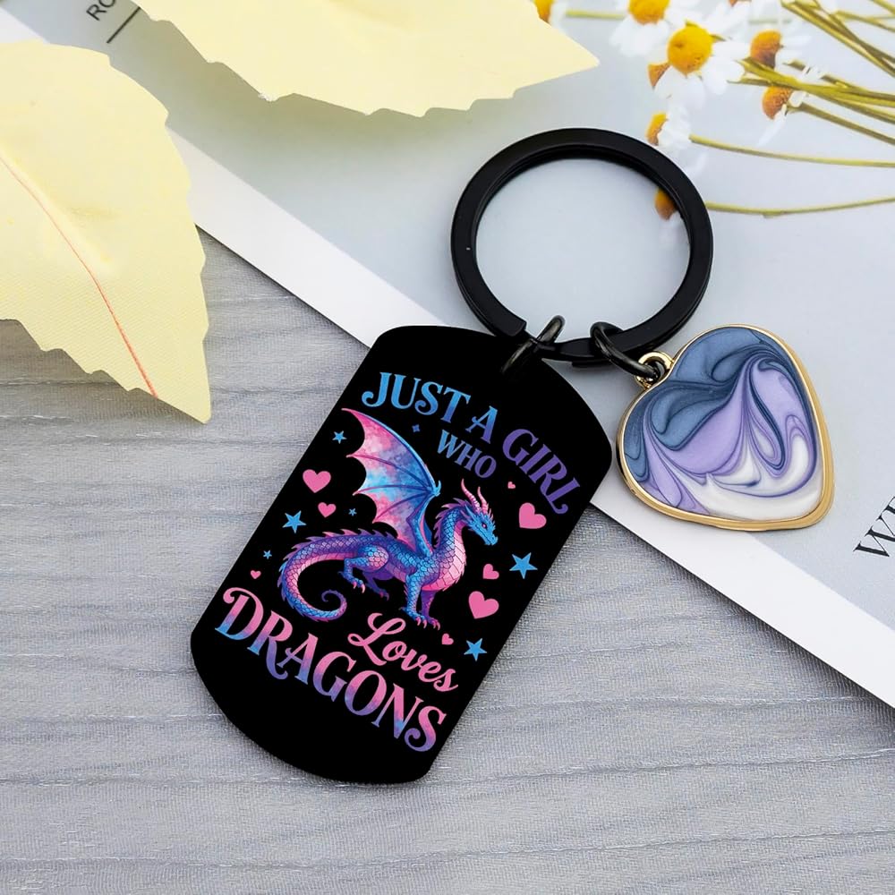 Introducing our Dragon Keychain, beautifully crafted with the inscription "Just A Girl Who Loves Dragons." This charming accessory features a heart-shaped pendant, making it the perfect gift for girls, women, dragon lovers, friends, besties, and soul sisters. It's an ideal choice for birthdays, Christmas, graduations, or any special occasion. Made from high-quality stainless steel, this dragon keychain promises durability and style. Plus, with our exceptional after-sales service, you can shop with confidence. Give the gift of dragons today!