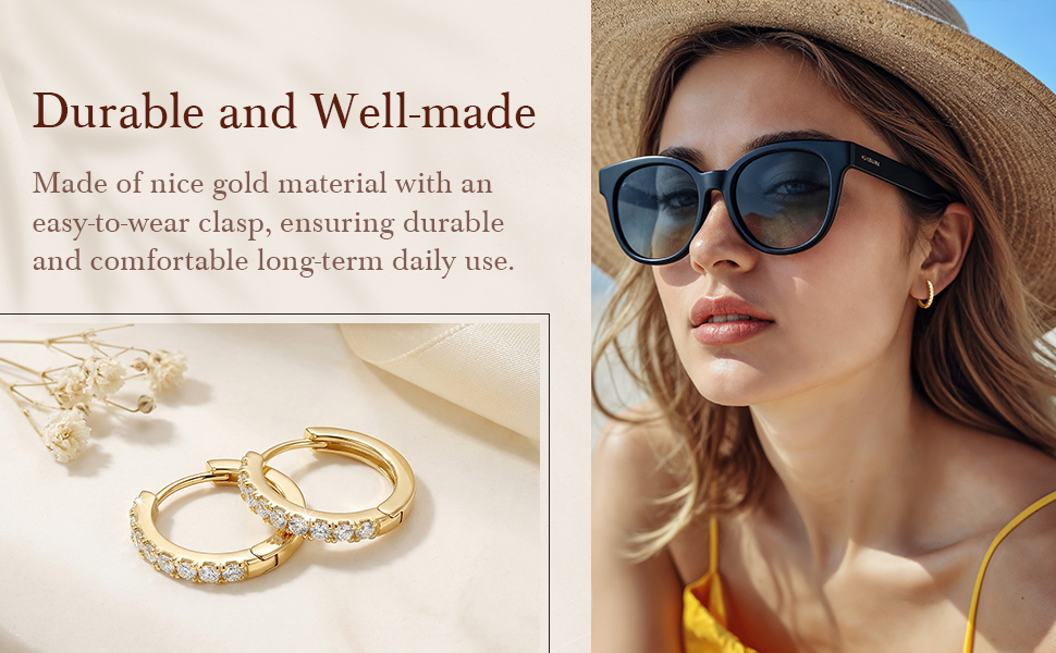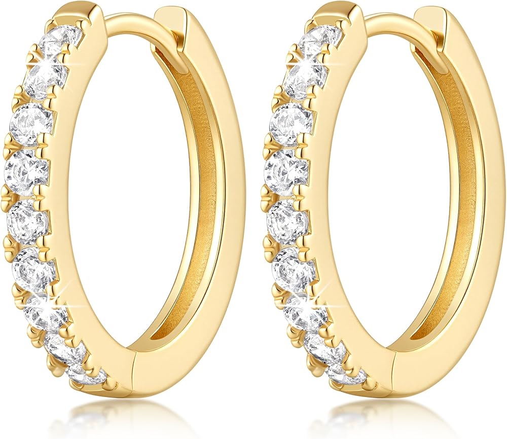 [BRIGHT ZIRCON DETAILS] Each pair of gold earrings features clear zircon stones for extra shine. The stones help the 14k gold plated earrings for women reflect light and look more eye-catching. These 14 karat gold hoop earrings add a touch of shine and make your overall style feel more polished