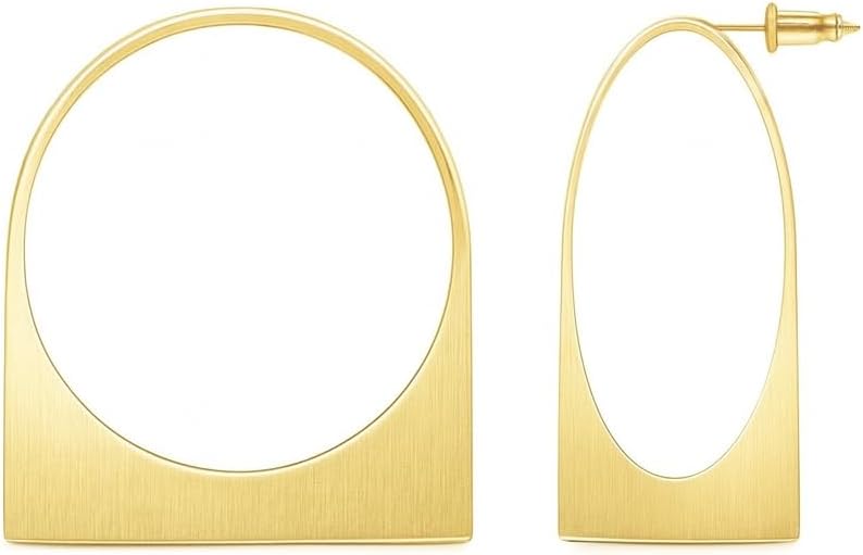 The hollow construction keeps these chunky earrings lightweight while still delivering a bold statement look. The brushed textured surface softens the gold tone into a modern, expensive matte finish, making them both trendy and versatile. Crafted from durable stainless steel, they resist fading and maintain their polished appearance over time. Designed with a clean geometric profile and smooth curves, these earrings add a contemporary, fashion-forward touch to any outfit—from casual daytime wear to night-out styling. Their expressive silhouette makes them a standout choice for holiday gatherings, vacation outfits, weekend parties, Christmas,birthday,and festive events, bringing confidence and modern flair to every occasion.