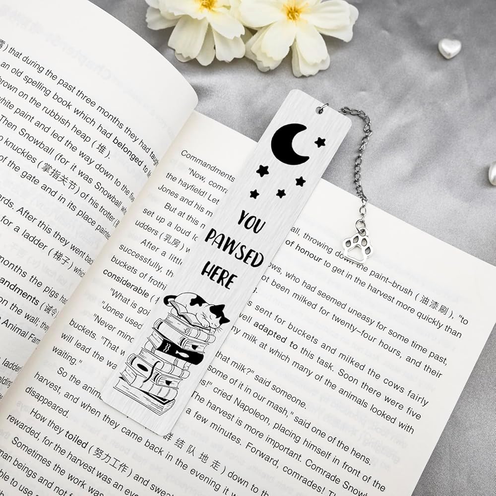 This cat bookmark is a whimsical, heartfelt gift for book lovers and cat lovers alike—perfect for anyone who finds joy in curling up with a good novel and a purring feline friend. Featuring a sleek, durable design with an adorable cat napping on a stack of books, a playful "YOU PAWSED HERE" slogan, and a tiny paw print charm, it turns every reading session into a cozy, memorable moment.