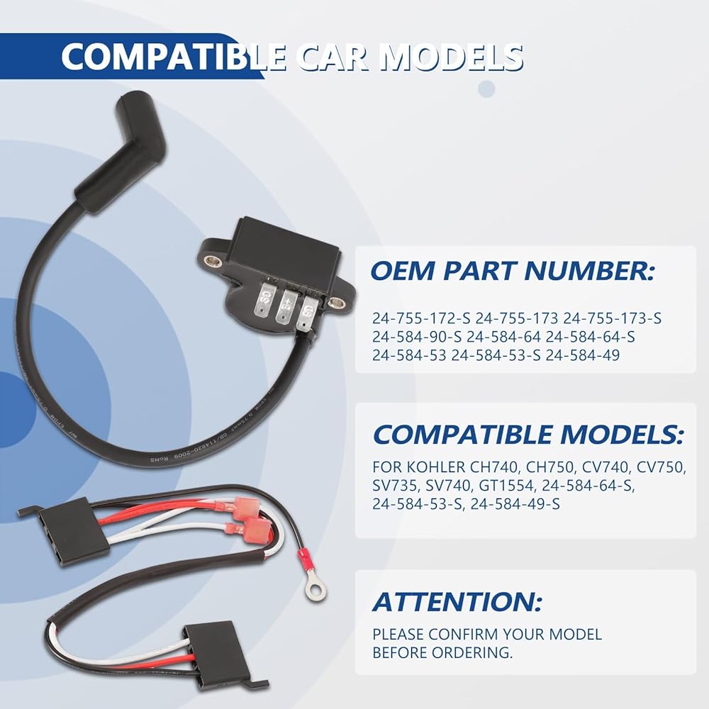 Exact Fit for Kohler Twin Cylinder Engines:Compatible with Kohler CH740, CH750, CV740, CV750, SV735 and SV740 engines. Designed for V-Twin engine applications used in riding mowers and lawn tractors