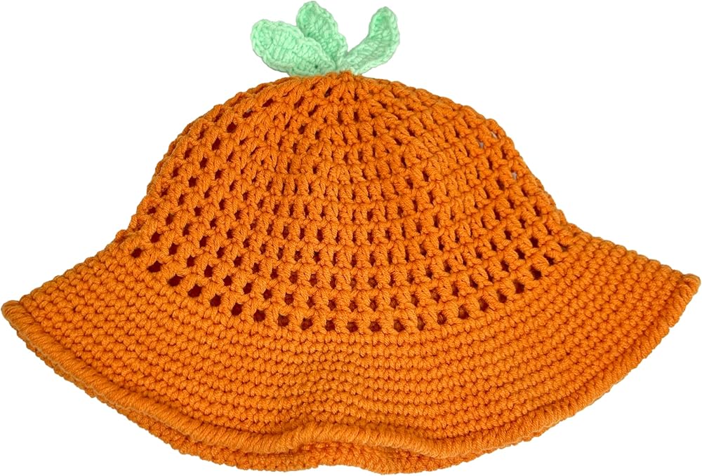 WHIMSICAL VEGETABLE-THEMED DESIGN: This adorable crochet hat features a vibrant orange color and is topped with cute green leaves, creating a fun carrot or pumpkin look. It's a perfect conversation starter and adds a touch of playful charm to any outfit, making you stand out in the crowd.