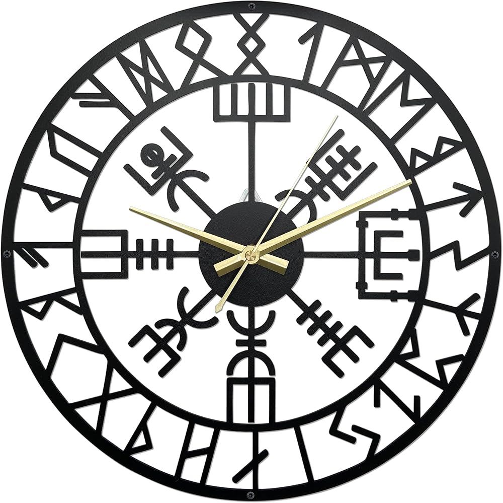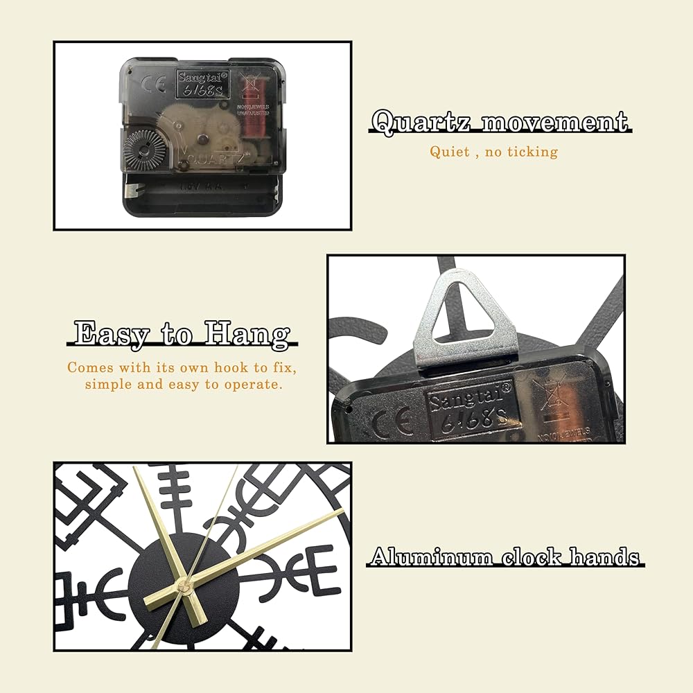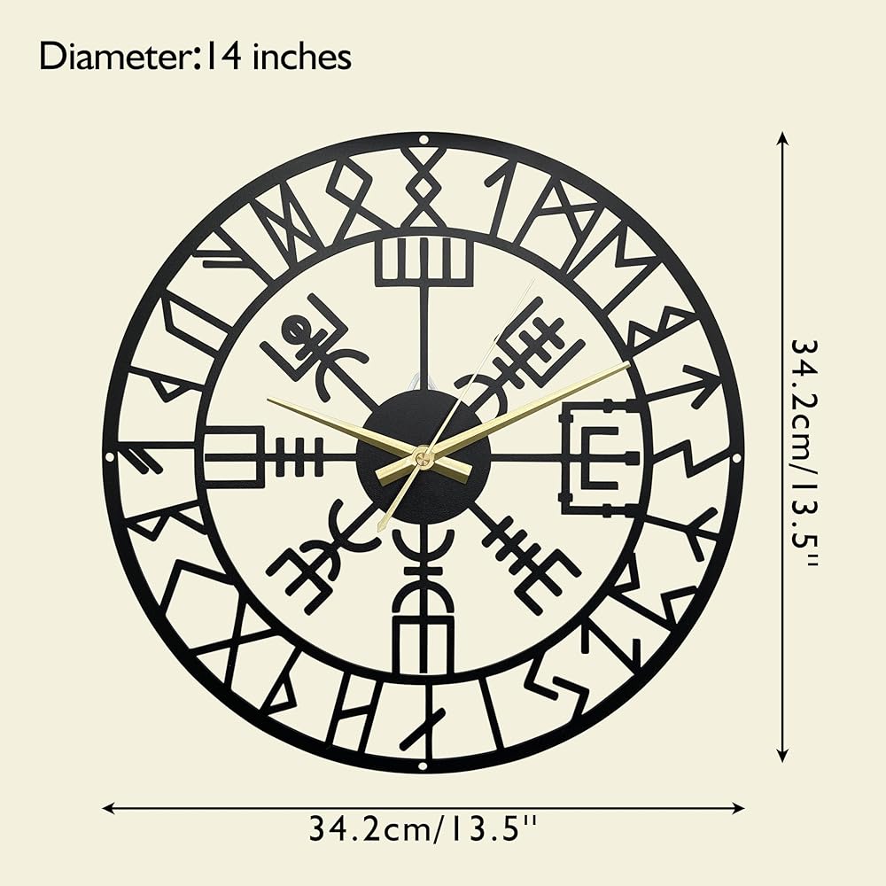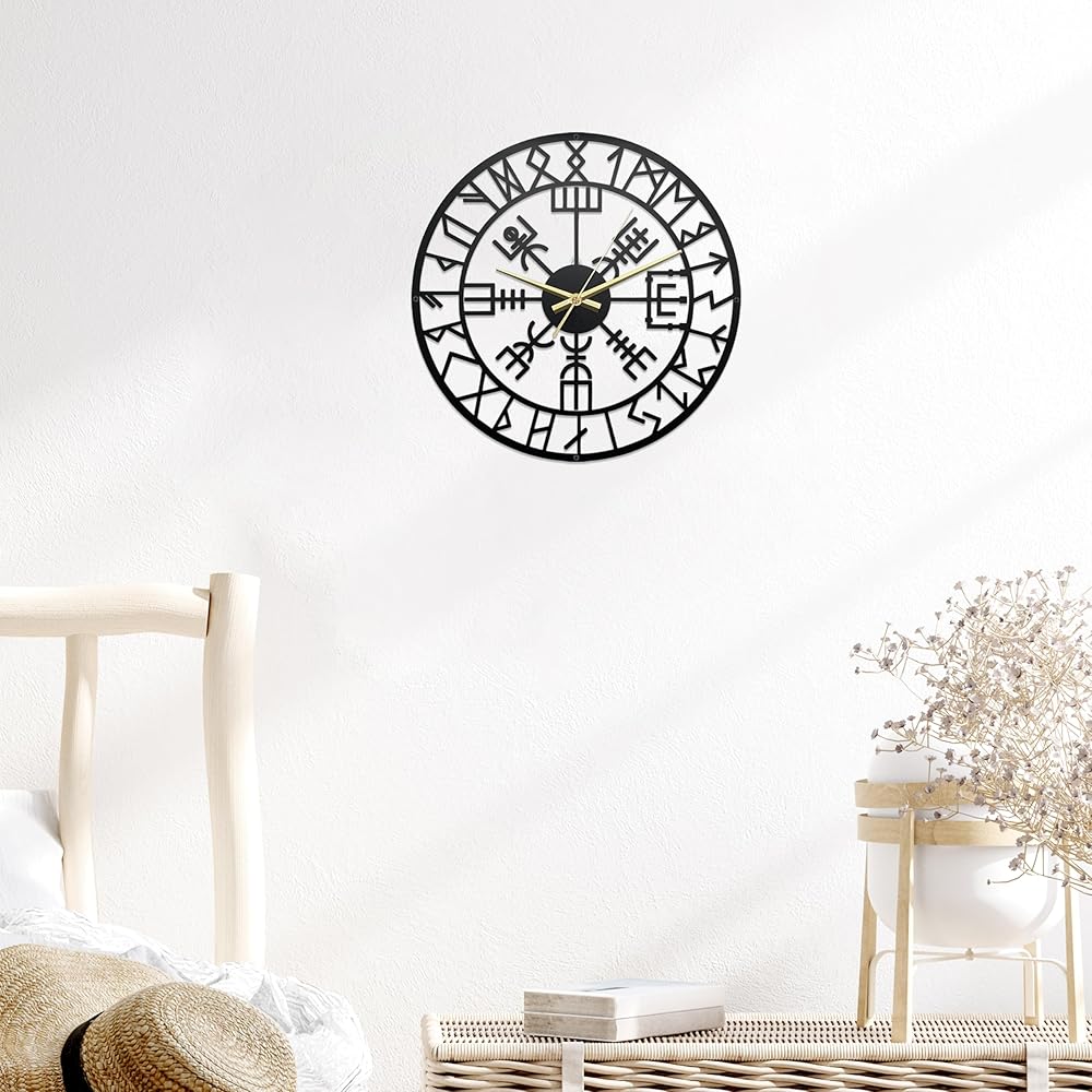 Elegant Viking style design: This Nordic Viking metal wall clock features a simple and fashionable design, which can seamlessly blend with any modern, classic or country-style decorations. The intricate line patterns are created by laser cutting high-quality metals and are treated with a matte finish, presenting an astonishing visual effect.Viking clock