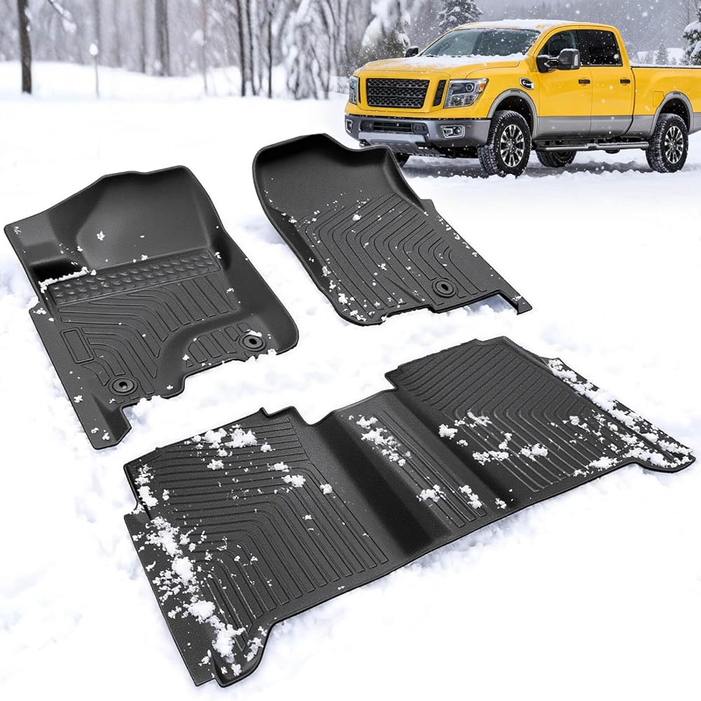 All-Weather Protection: These 3-piece front rear liner sets for Titan 08-15 are designed for all-weather use, featuring deep channels and raised edges that trap mud, snow, sand, and other debris. Each custom floor mat for Titan 2008-2015 provides full coverage for the interior, keeping the cabin organized throughout every season. The textured surface enhances footing and helps maintain a tidy, well-kept interior year-round